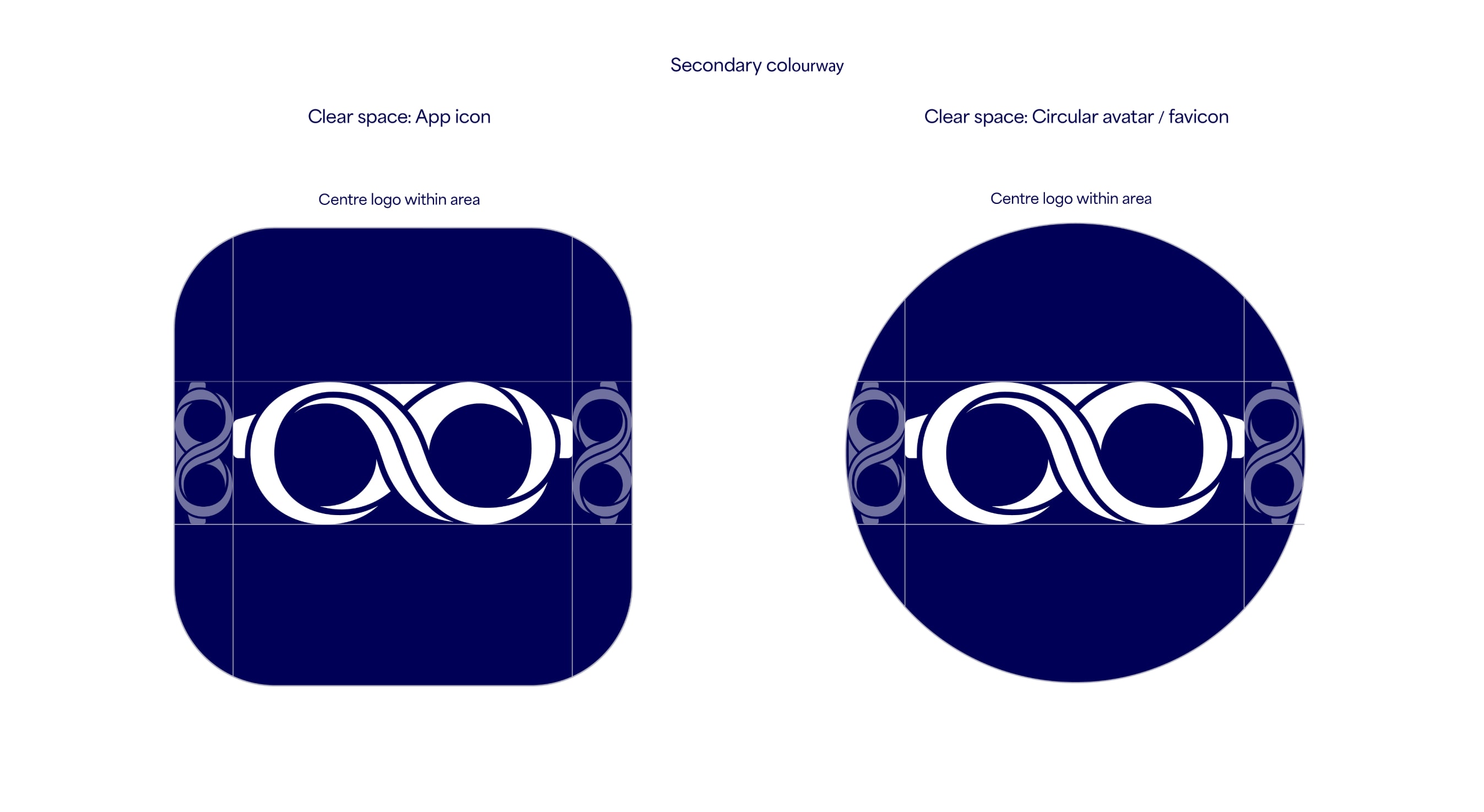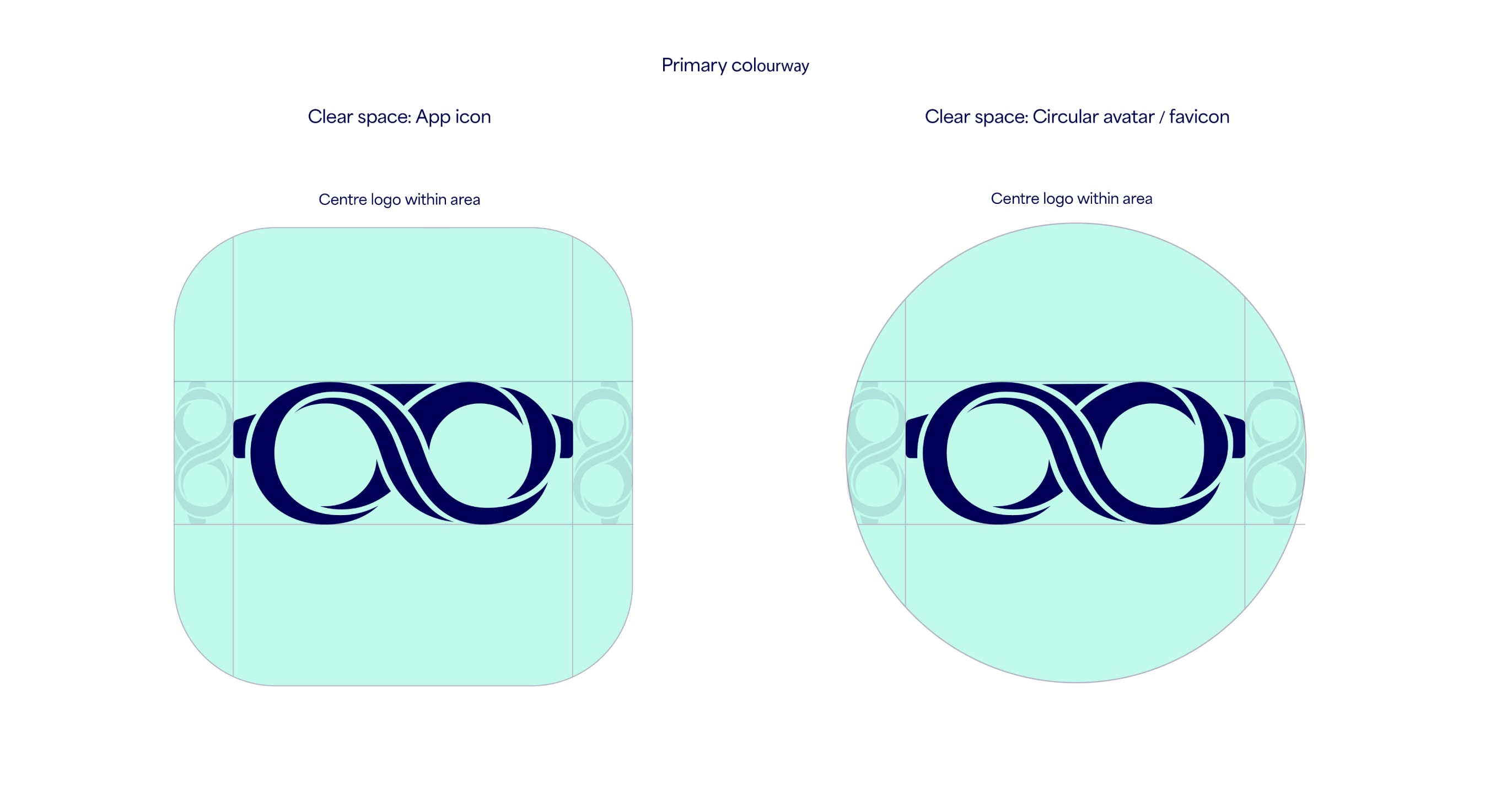 We use the symbol on its own and without the wordmark for all icons, avatars and favicons across all platforms. It is important to use the clear space indicated here. Our logo always appears as Dark Blue on a See Green background as a primary colourway, and then as White on Dark Blue as the secondary colourway.