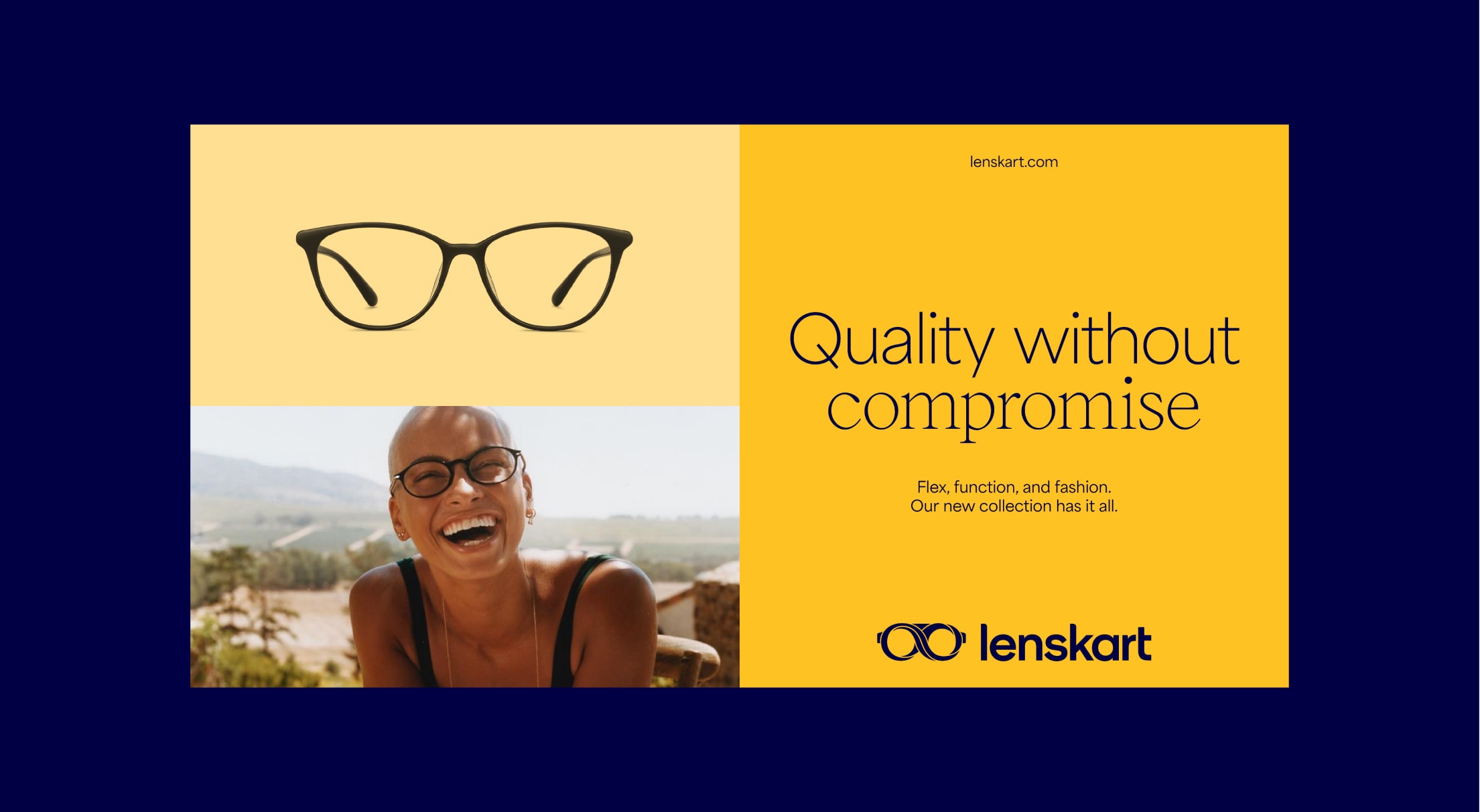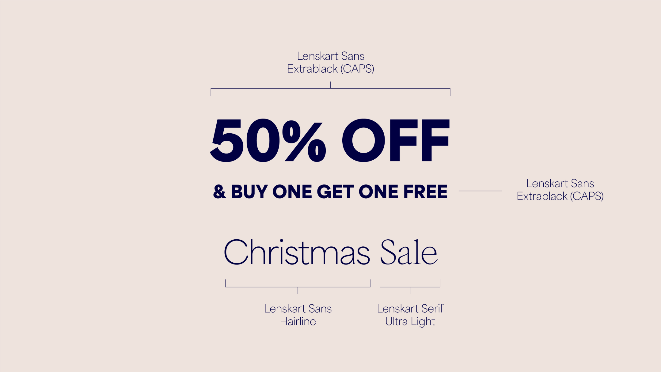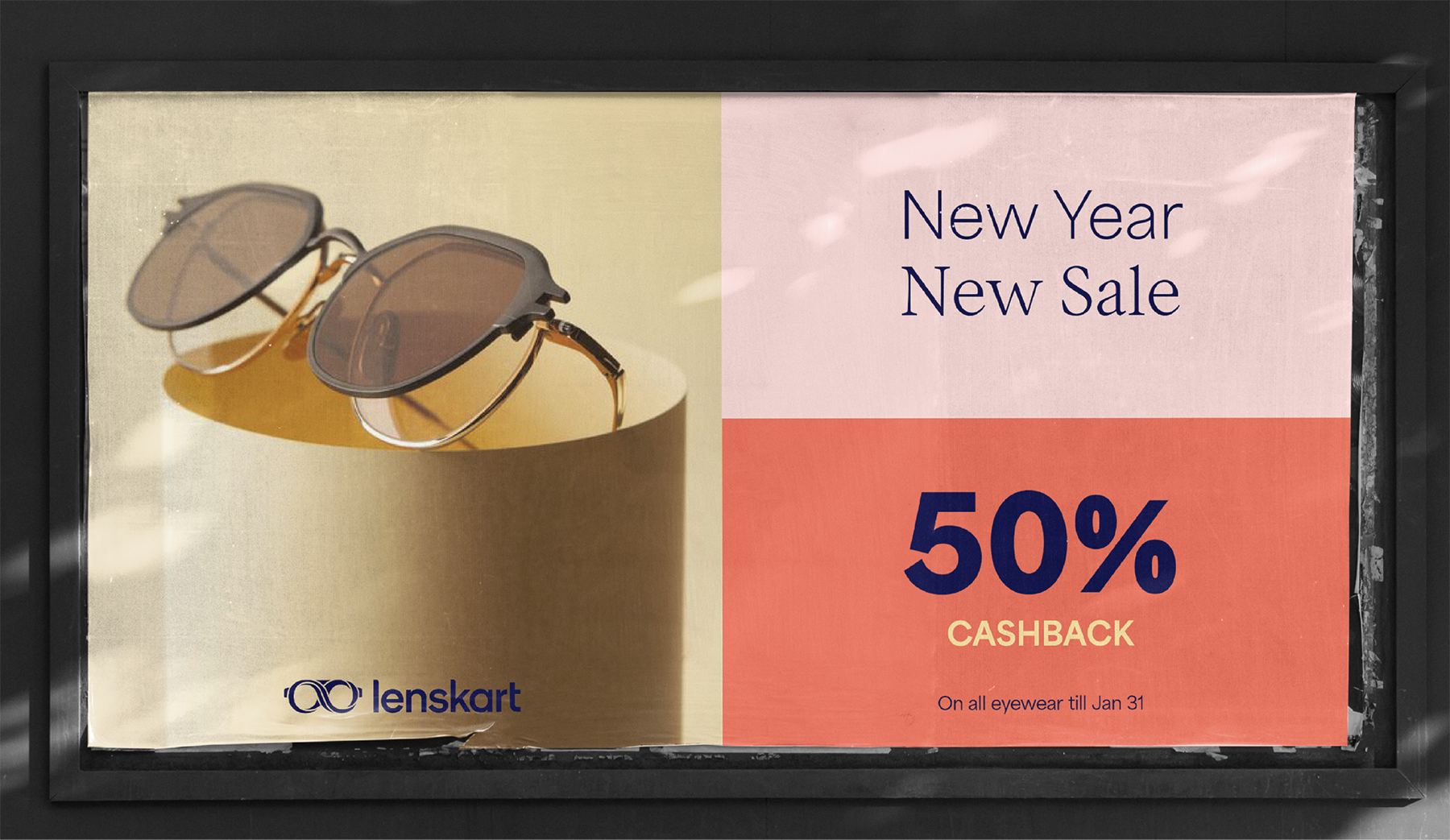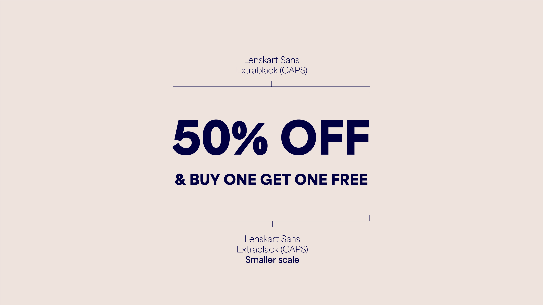 Lenskart Sans is our functional typeface. The lighter weights can be used for small and informative copy, and the bolder weights can be used for louder attention-grabbing comms such as Sales ads.