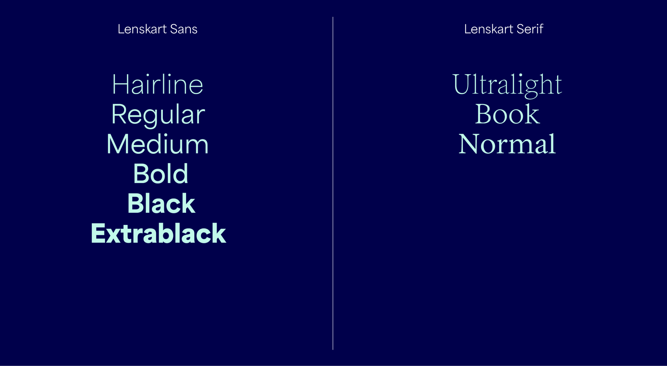Here is an overview of the Lenskart typefaces. Lenskart Sans typeface conveys function and trust and its heavier weights can be used for bold sales headlines. Lenskart Serif provides an emotional contrast to our Lenskart Sans.